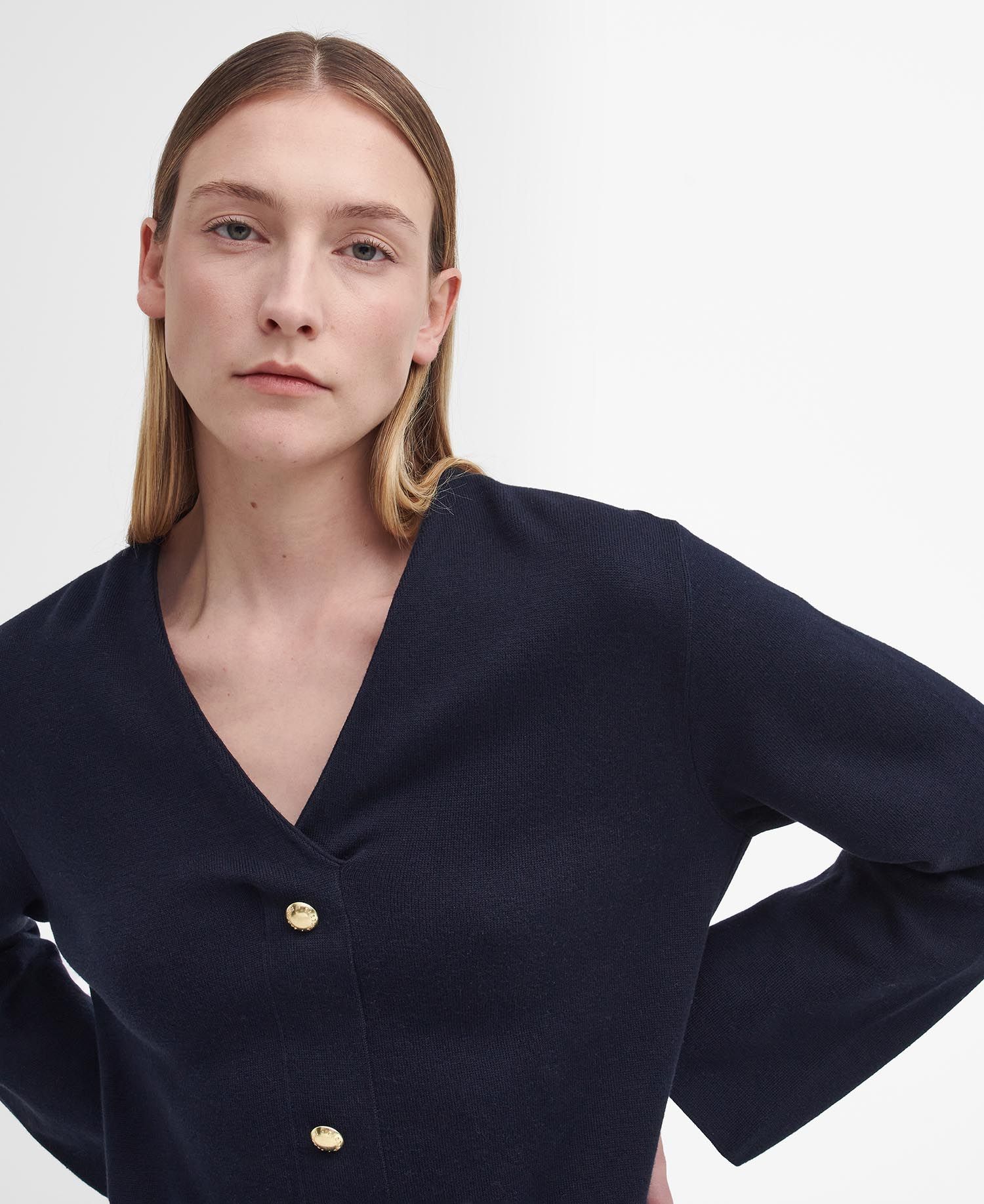 Premium quality and craftsmanship is what Barbour is known best for and the Barbour Anita Knitted Mini Dress is a prime example of this. Crafted from a fine cotton knit, this mini dress is perfect for transitioning your wardrobe through the seasons. With a flattering V-neckline, wide sleeves and branded bright brass buttons, we recommend pairing it with knee high boots for a contemporary finish.