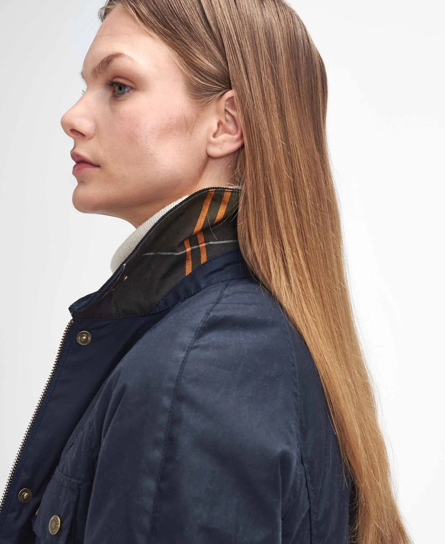 A new addition to the Barbour waxed jacket family, the Barbour Solway Belted Waxed Jacket is perfect for those looking for a flattering feminine take on our classic styles. This belted rendition showcases the functional design and details that Barbour is known for, including traditional cord detail to the collar, bellows pockets for optimal storage and our signature Barbour tartan to the lining for the perfect finishing touch.