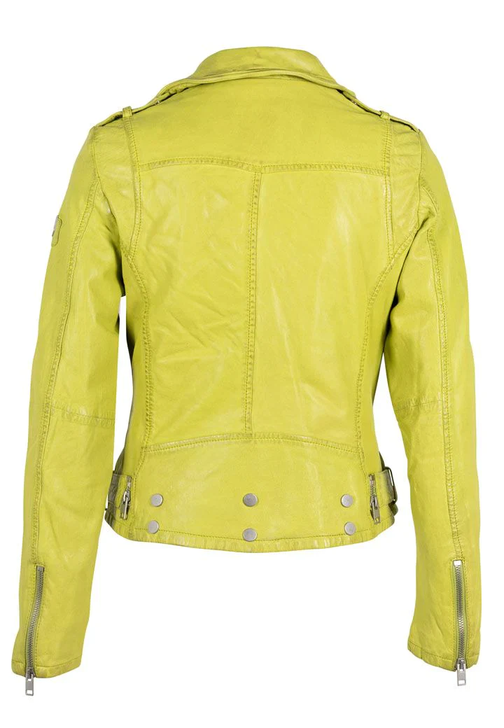 Expertly crafted with a snug fit, this Wild Leather Jacket is designed to accentuate your figure. The belt around the waist adds a touch of elegance while also providing a secure fit. In a stunning lime color, this jacket is sure to be a showstopper wherever you go.